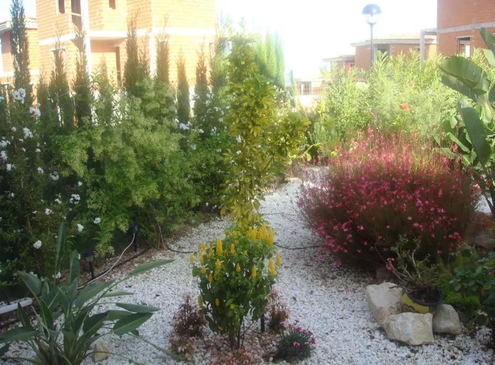 Hay bonitas casas con jardines exóticos con sus plantas mediterráneas, pero también con almendros, limoneros, naranjos, nísperos y cerezos...